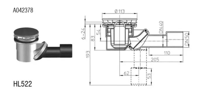 HL sifon za tuš kad DN40/50, 90mm