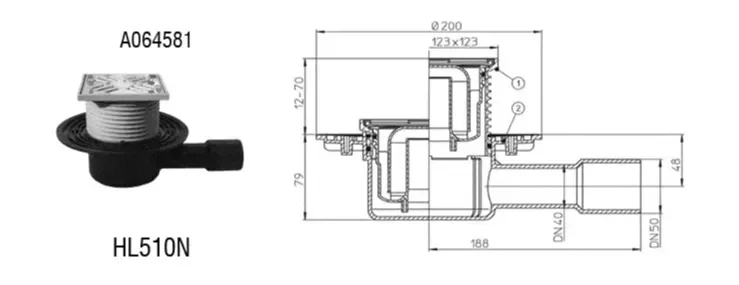 HL talni odtok DN40/50 123x123mm (115x115mm)
