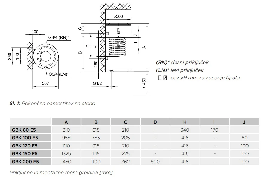 Kombinirani bojler Gorenje GBK OR - leva ali desna izvedba