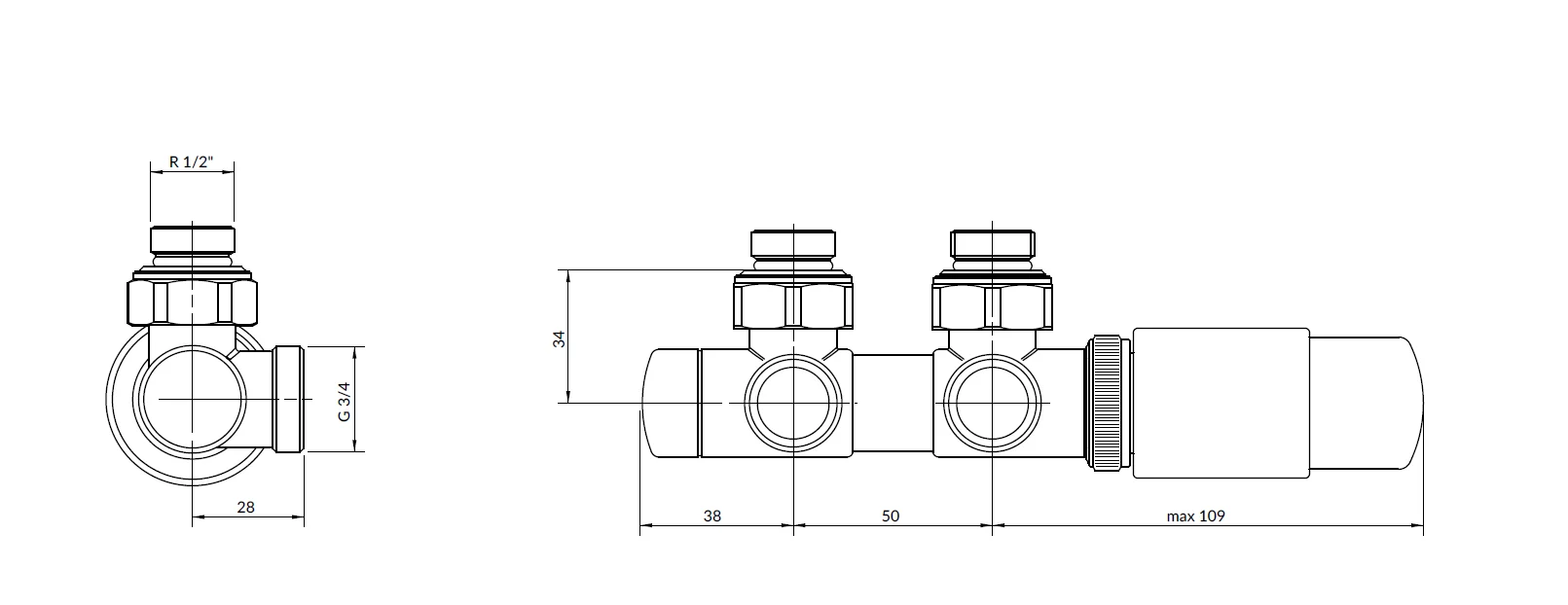 Set DESIGN (all in one) radiatorskih ventilov za ZX spodnji priklop radiatorjev...