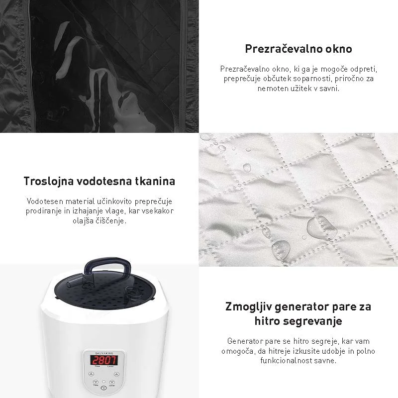 Šotor za savno iz trislojne nepremočljive tkanine in cevi iz steklenih vlaken