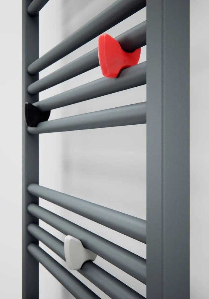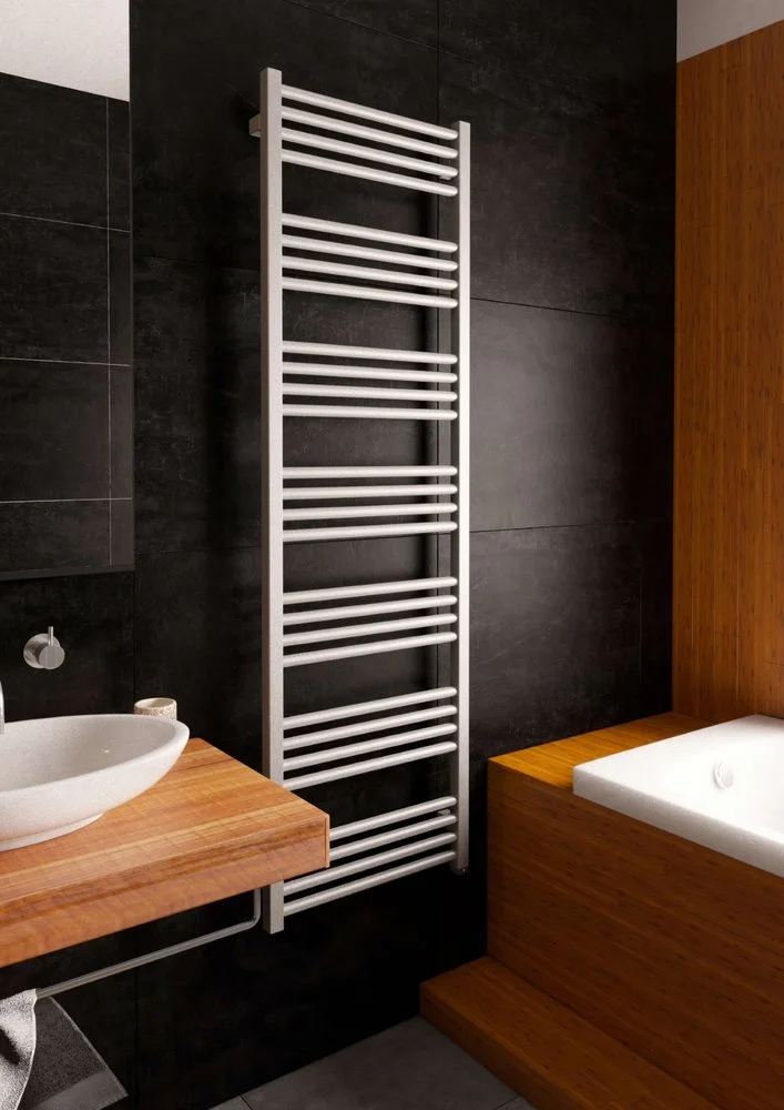 Pokončni barvni kopalniški radiator TERMA FIONA je harmonično dopolnilo notranjosti kopalnice - sodoben dizajn s preprosto obliko in pravilno razporeditvijo cevi. Priklop tega vsestranskega radiatorja je možen na: