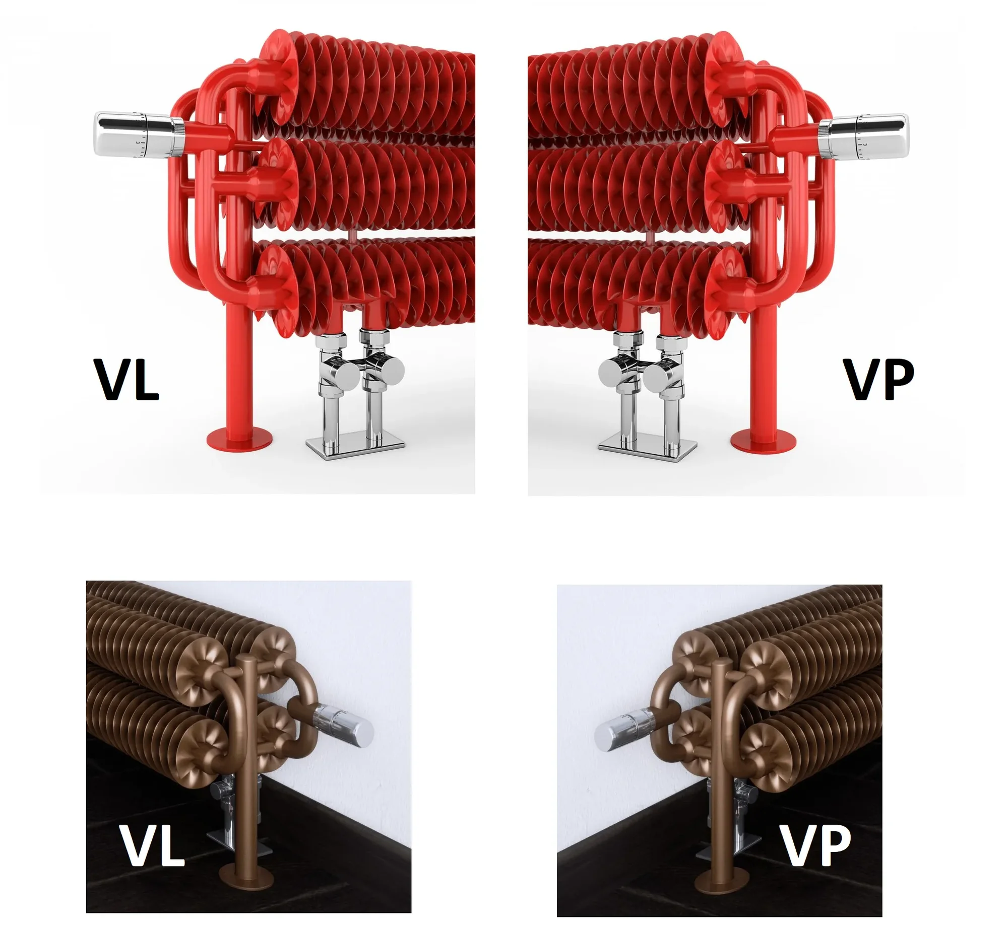 Vse slike so simbolične in prikazujejo obliko radiatorja v naključni barvi in dimenziji ter lastnosti ene od opcij možnih kombinacij. Ventili za priklop in električni grelci ter ostali dodatki (obešala) so praviloma dobavljivi ločeno in za doplačilo, v sklopu radiatorja pa je vedno že zajet pribor za pričvrstitev na steno. Podatki o moči radiatorja so podani za režim 75/65/20.
