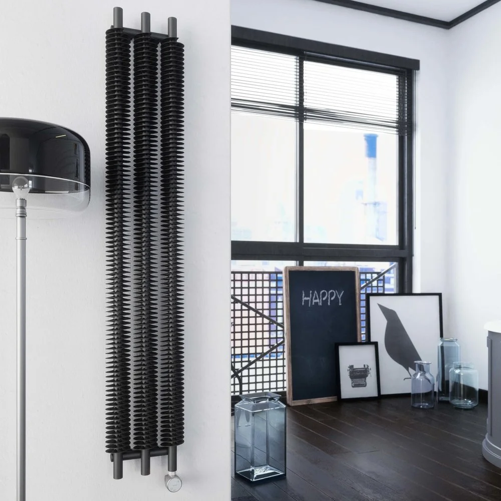 Rustikalni design radiator TERMA RIBBON V E (vertikalni, samo električna izvedba) je priznana različica radiatorja s številnih mednarodnih tekmovanj in je idealna izbira za moderno in minimalistično notranjost. Njegova prefinjenost pride še posebej do izraza v kombinaciji s površinami v podobi opeke, kamna, ometa ali lesa.