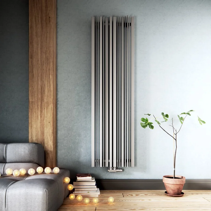 Design stilki radiator TERMA SHERWOOD V (vertikalni) je prava paša za oči in nas navidezno popelje v gozd s svojo preprosto obliko ter zanimivo razporeditvijo ploščatih cevi. Različni preseki cevi ustvarijo iluzijo letvic in porušijo običajno monotonost. Priklop radiatorja je možen na: