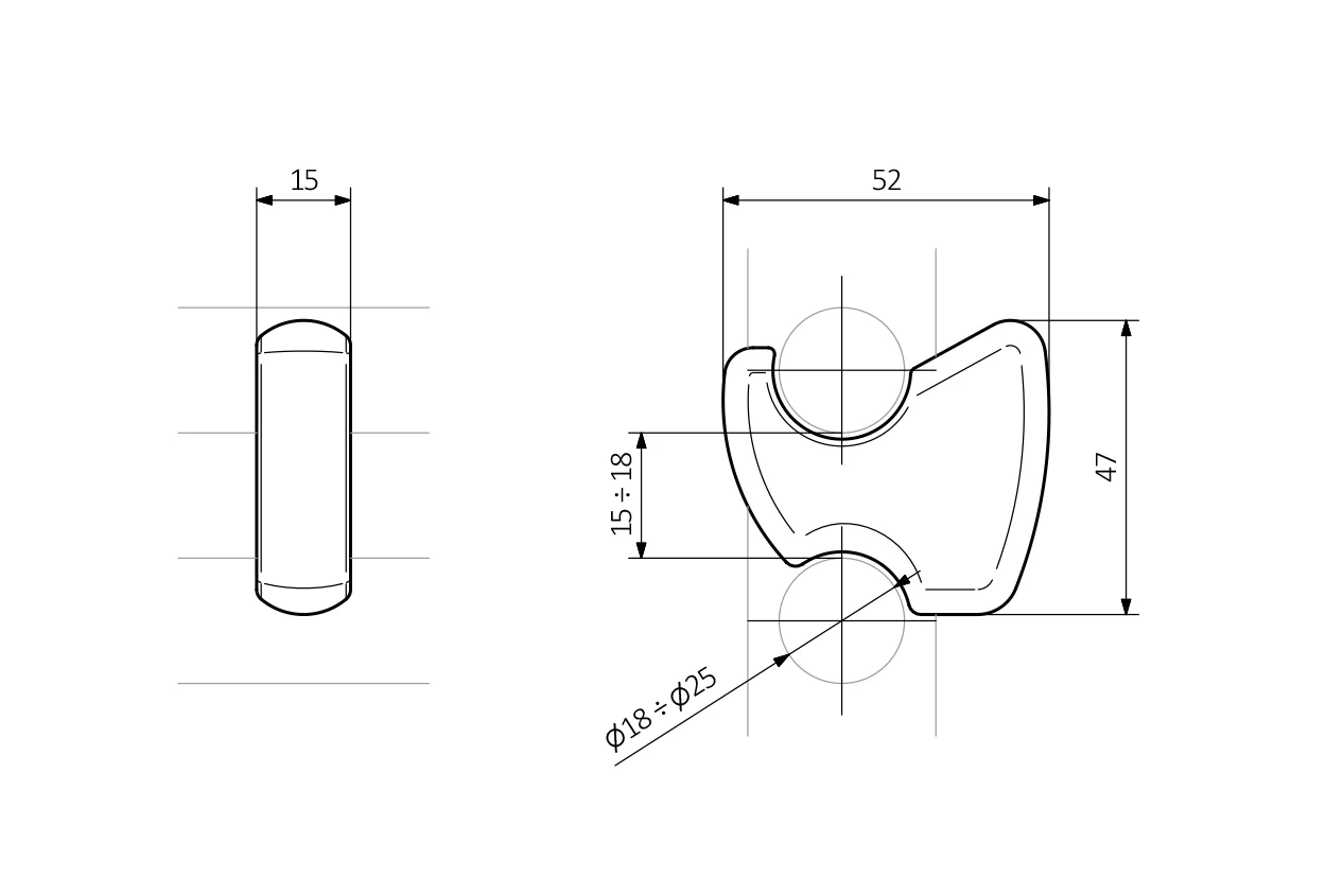 - širina obešala je 15mm, višina 47 mm, dolžina pa 52 mm skupaj z vpetjem